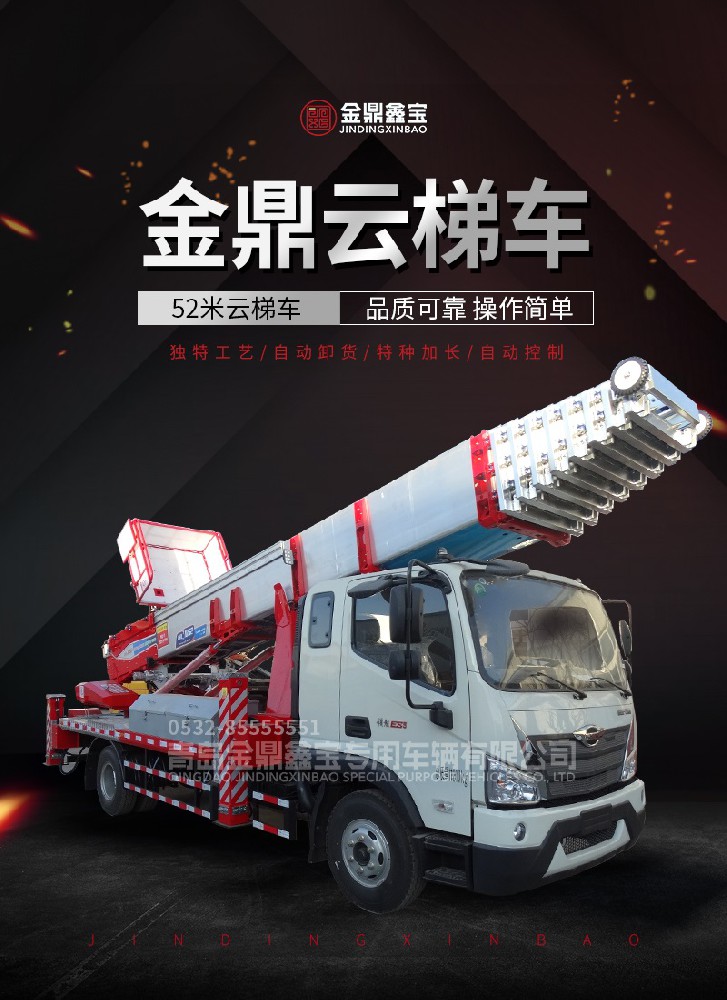 作業範圍可達52米高,相當於17層樓,青島金(jīn)鼎鑫寶雲梯車整體(tǐ)采用韓(hán)國原裝進口梯(tī)臂,