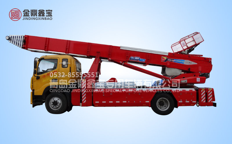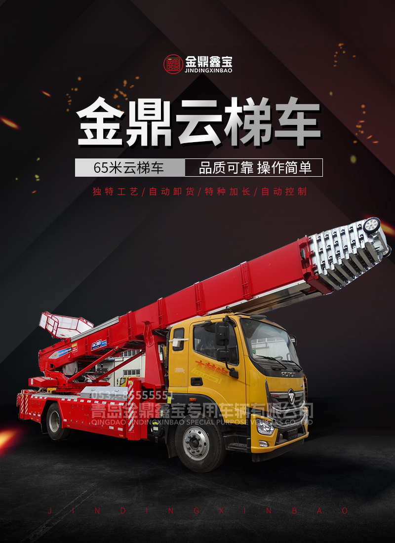 作業範圍可達65米高,青島91视频在线鑫寶雲梯車整體采用韓國原裝進口梯臂,最大承載物重量450公斤。
